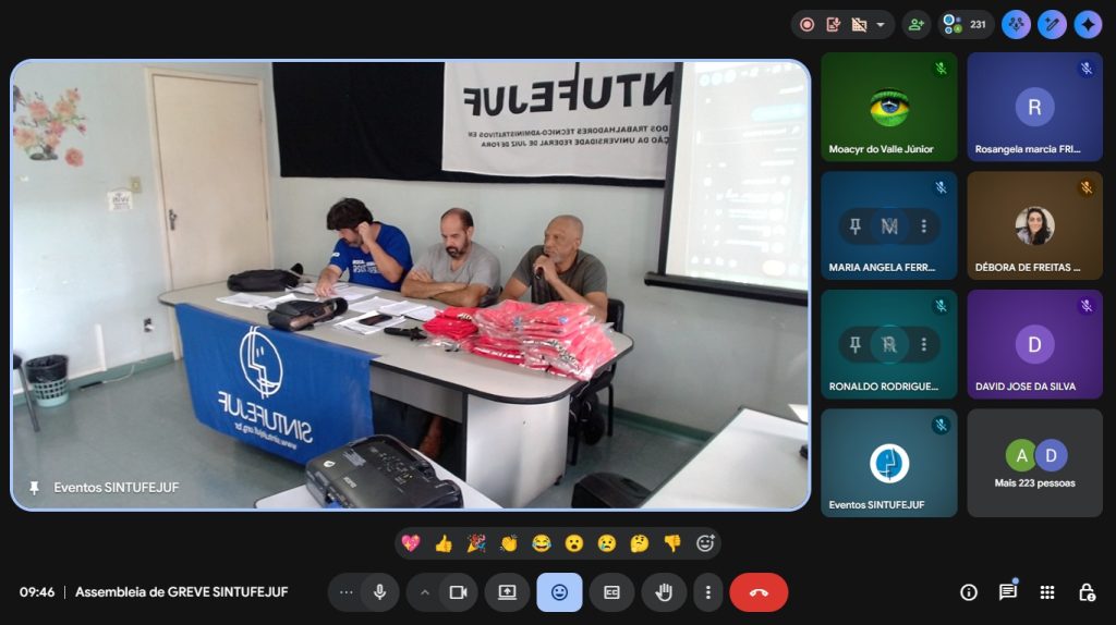 No âmbito local, a assembleia também contou com informes do coordenador geral Carlos Augusto Martins sobre a reunião realizada com a Reitoria da UFJF no dia 20 de março. Segundo ele, houve avanço em alguns pontos da pauta, como a retomada de comissões e grupos de trabalho, incluindo o de tradutores e intérpretes de Libras, além da sinalização de retomada da comissão sobre a abertura das reuniões do Conselho Superior.
