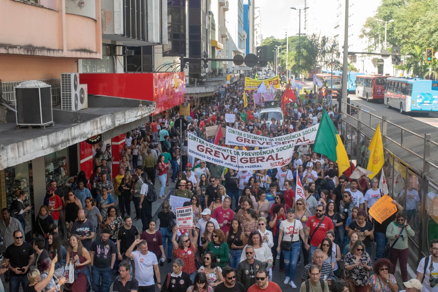 Em Governador Valadares, as trabalhadoras e trabalhadores técnico-administrativos em Educação da UFJF também aderiram à greve geral e se juntaram ao movimento. A mobilização convocada pela Frente Brasil Popular, movimentos sociais e populares, TAEs, professores, estudantes, trabalhadores e trabalhadoras do campo e da cidade, teve início às 8h, no Mercado Municipal e seguiu em direção ao prédio do INSS.