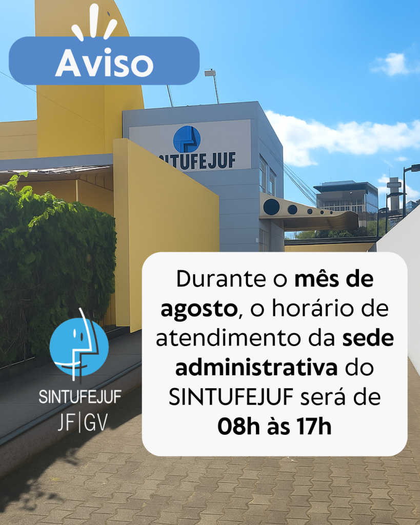 Durante o mês de agosto, o horário de atendimento da sede administrativa do SINTUFEJUF será de 08h às 17h