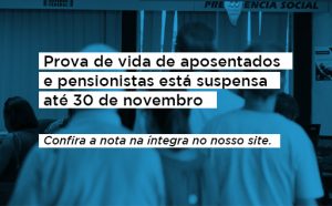 novembro 9, 2020Prova de vida de aposentados e pensionistas está suspensa até 30 de novembro Nota informativa