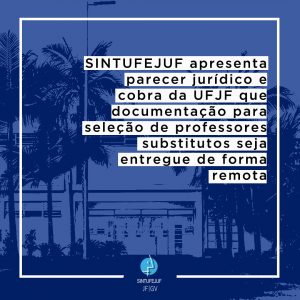 outubro 1, 2020SINTUFEJUF apresenta parecer jurídico e cobra da UFJF que documentação para seleção de professores substitutos seja entregue de forma remota Parecer jurídico