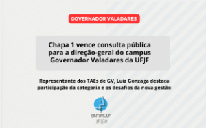 dezembro 19, 2024Chapa 1 vence consulta pública para a direção-geral do campus Governador Valadares da UFJF Representante dos TAEs de GV, Luiz Gonzaga destaca participação da categoria e os desafios da nova gestão