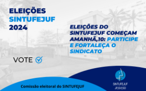 dezembro 9, 2024Eleições do SINTUFEJUF começam amanhã, 10: participe e fortaleça o sindicato Eleições 2024