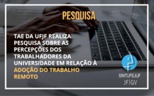dezembro 20, 2022TAE da UFJF realiza pesquisa sobre as percepções dos trabalhadores da Universidade em relação a adoção do trabalho remoto Pesquisa