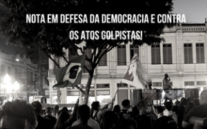 janeiro 9, 2023NOTA EM DEFESA DA DEMOCRACIA E CONTRA OS ATOS GOLPISTAS! Em resposta aos fatos de ontem será realizada nesta segunda-feira, 9, às 17h, em frente a Câmara Municipal, a Manifestação pela democracia, sem anistia e contra a fome!