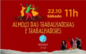 outubro 14, 2022Tradicional almoço das trabalhadoras e trabalhadores será realizado em 22 de outubro, sábado Sede Campestre do SINTUFEJUF