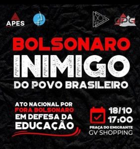 outubro 18, 2022SINTUFEJUF, APES, DCE e APG convocam para ato contra Bolsonaro e em Defesa da Educação em Governador Valadares Participe!