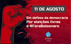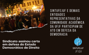 agosto 12, 2022SINTUFEJUF e demais entidades representativas da comunidade acadêmica da UFJF participam de ato em defesa da democracia Sindicato assinou carta em defesa do Estado Democrático de Direito