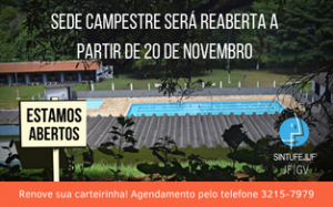 novembro 16, 2021Renove sua carteirinha da Sede Campestre! É necessário apresentar passaporte de vacina contra Covid-19