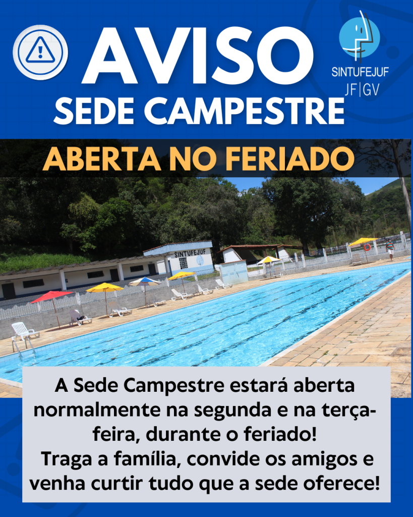 Sede Campestre estará aberta normalmente dias 20 e 21 de abril